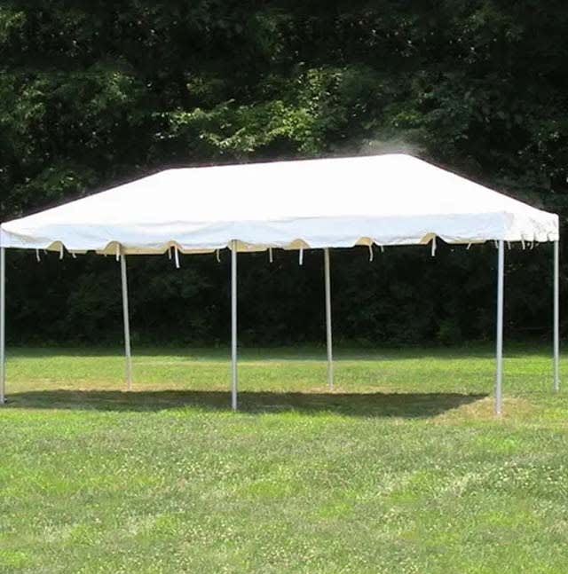 Our pole tent is a perfect choice if you want a slightly sturdier product this heavy duty tent. This tent makes an elegant addition to any outdoor setting. Great for backyard entertaining, picnics, bake sales, garage sales, and more.