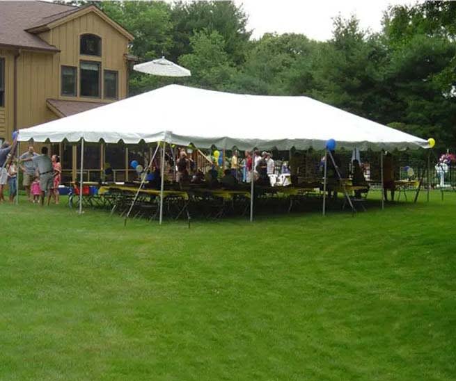 Our pole tent is a perfect choice if you want a slightly sturdier product this heavy duty tent. This tent makes an elegant addition to any outdoor setting. Great for backyard entertaining, picnics, bake sales, garage sales, and more.